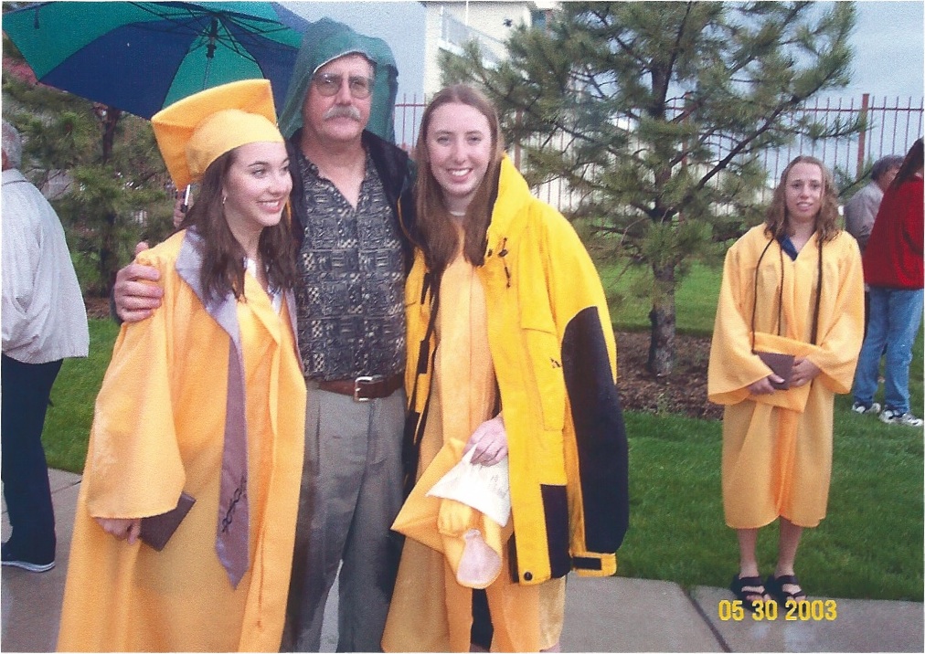 That’s my friend Andrea with her sister and dad on the day of our high school graduation, shortly after the ceremony, when everyone was reuniting with their families.